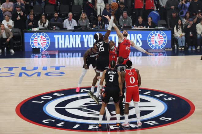 太阳队的布克上半场得到13分和7次助攻,吉莱斯皮得到12分;快船队的祖巴茨和科林斯各得到9分。