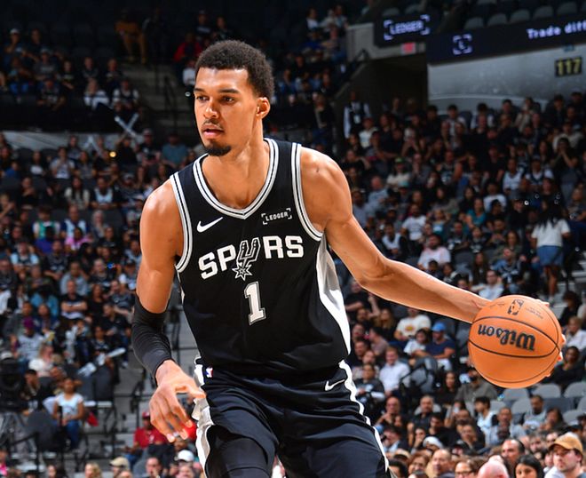马刺主场迎战鹈鹕,马刺是背靠背作战(昨日击败火箭),体能不足,好在福克斯此战复出,迎来赛季首秀,马刺方面哈珀、科内特缺阵,鹈鹕方面锡安、穆雷、普尔缺阵,马刺一直保持领先,一度领先19分,最终以7分优势拿下比赛。文班19中8得到18分18板3助3帽,福克斯14中9得到24分3板3助,鹈鹕方面墨菲22中15(三分11中5)得到41分9板3助。